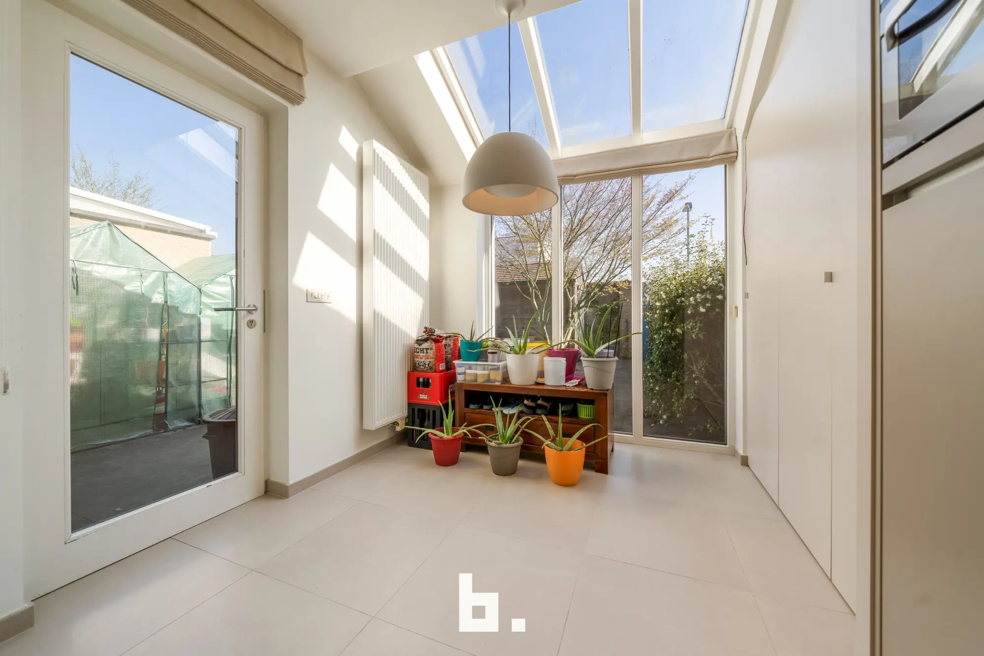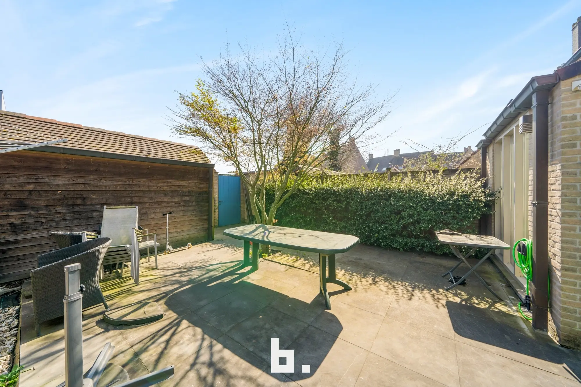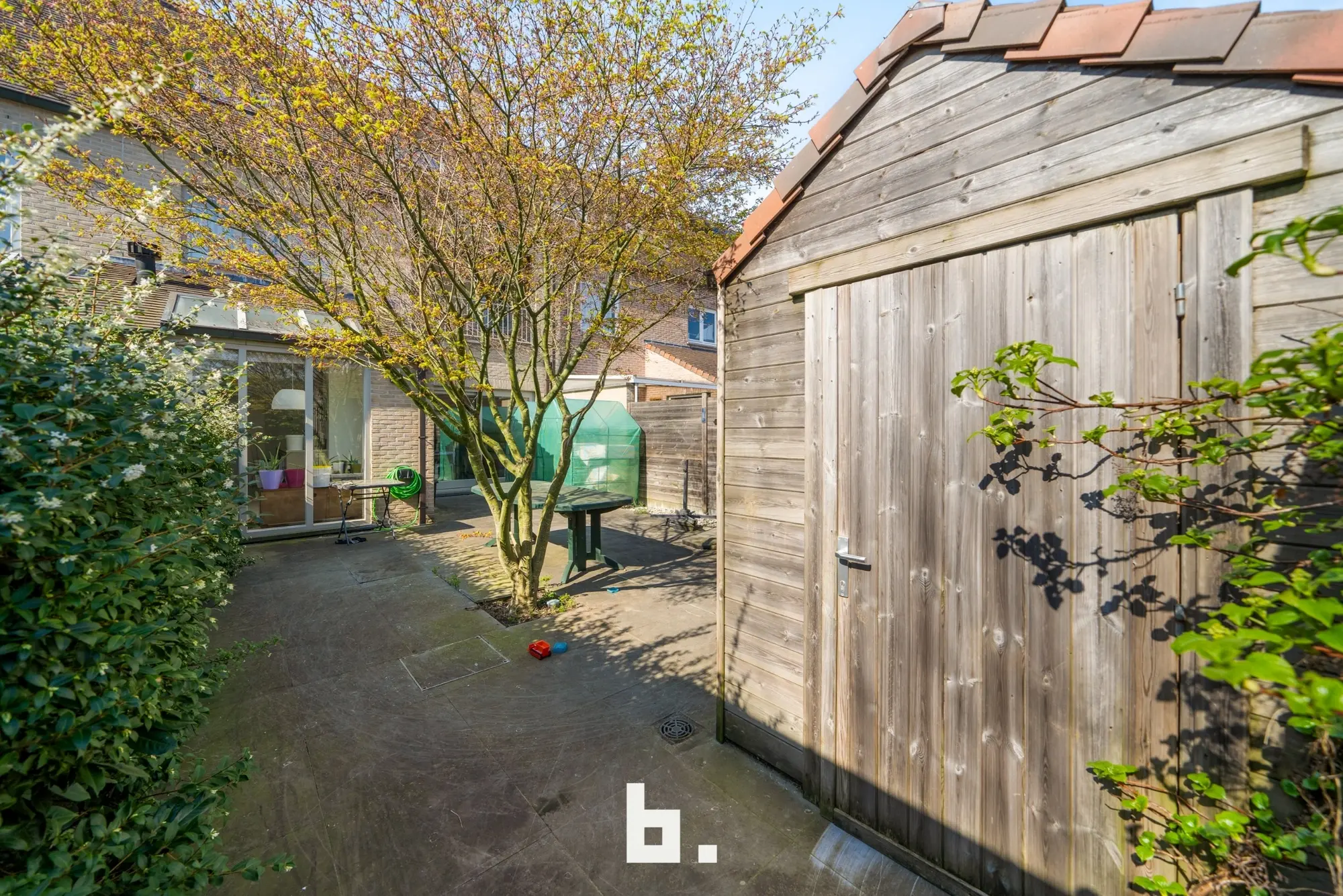 Via het schuifraam of de achterdeur komt men op de stadskoer. De koer is bereikbaar vanuit een zijstraatje via een poortje, ideaal om met de fiets thuis te komen.