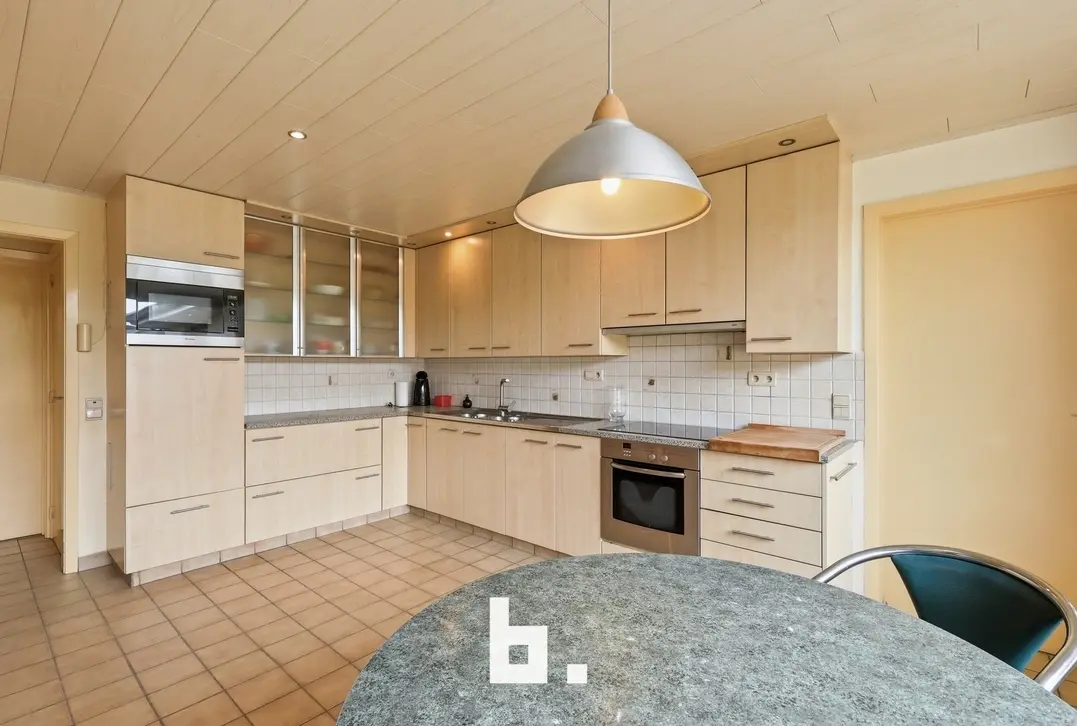 De ruime leefkeuken vormt het hart van de woning. Verder beschikt het gelijkvloers over een praktische berging, een droge kelder en maar twee ruime slaapkamers, evenals een badkamer en een ruime garage.