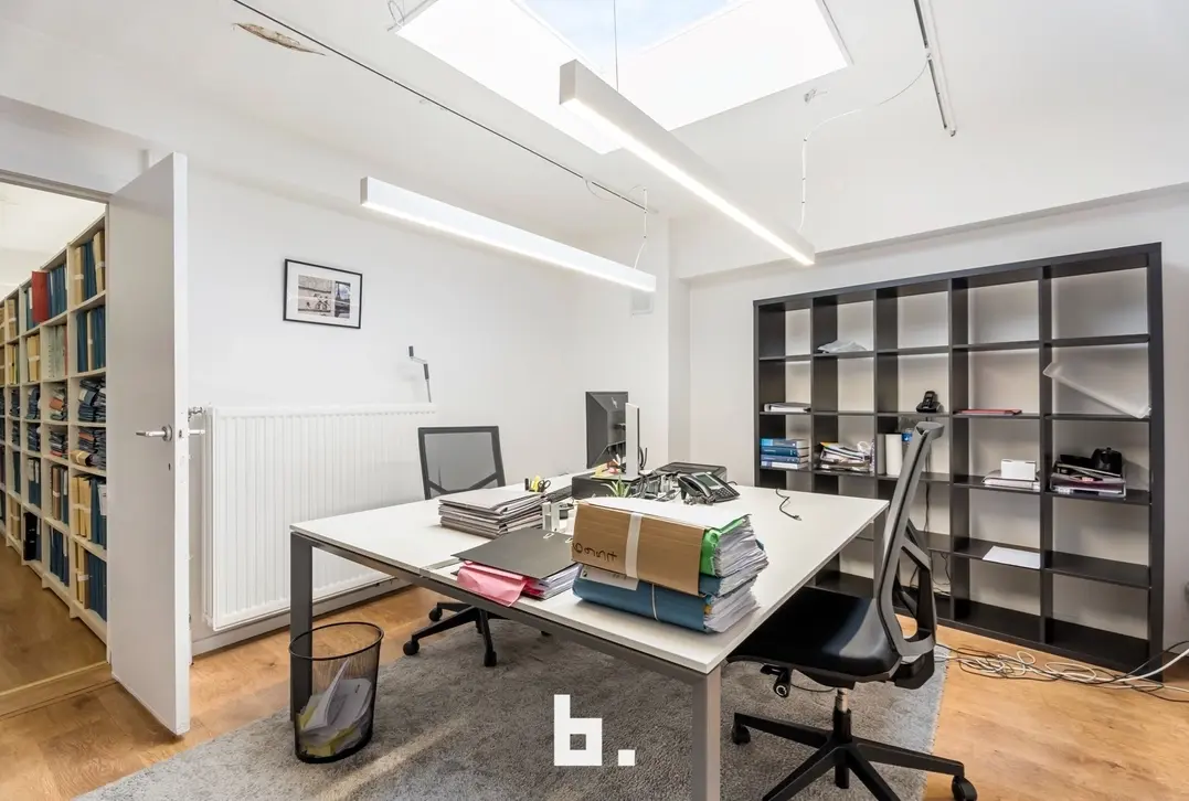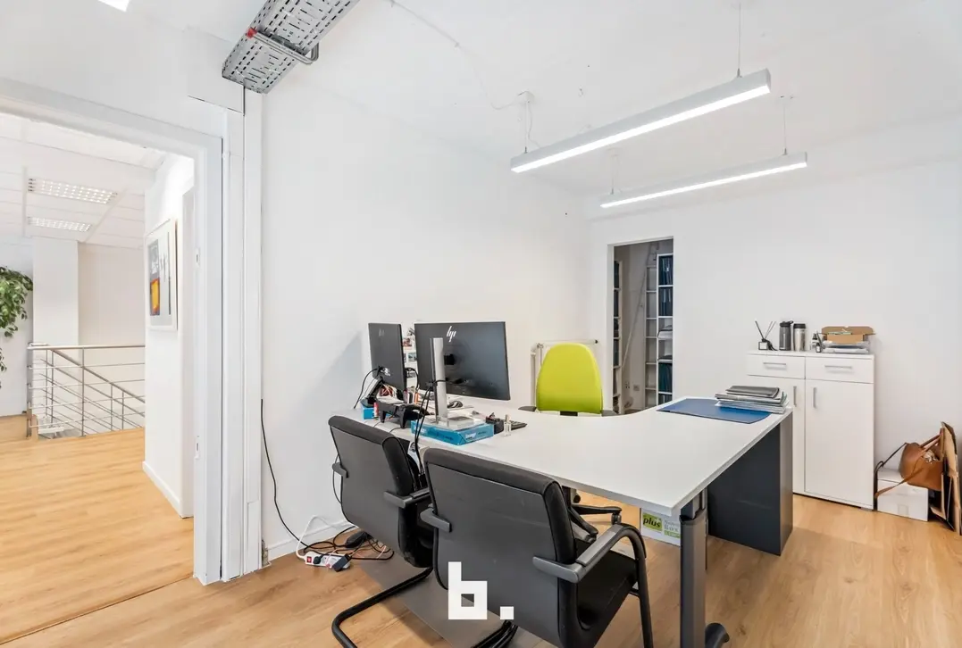 Deze instapklare kantoorruimte van 375 m², verdeeld over twee verdiepingen (gelijkvloers en 1ste verdieping), biedt alle nodige voorzieningen voor een efficiënte en aangename werkomgeving.