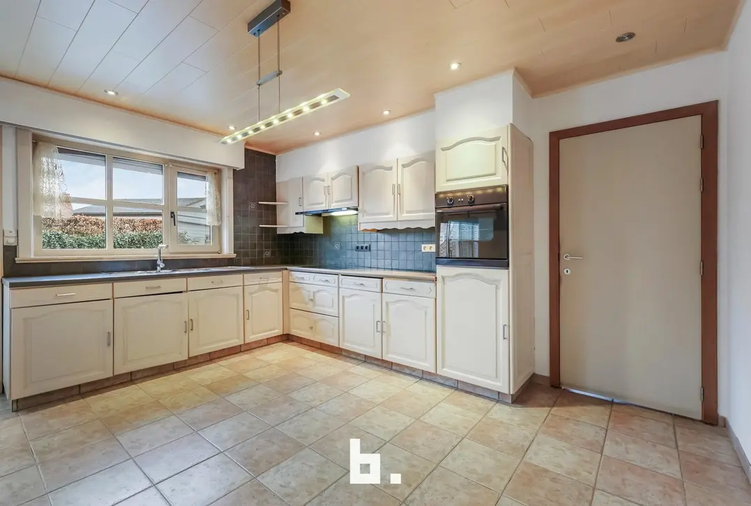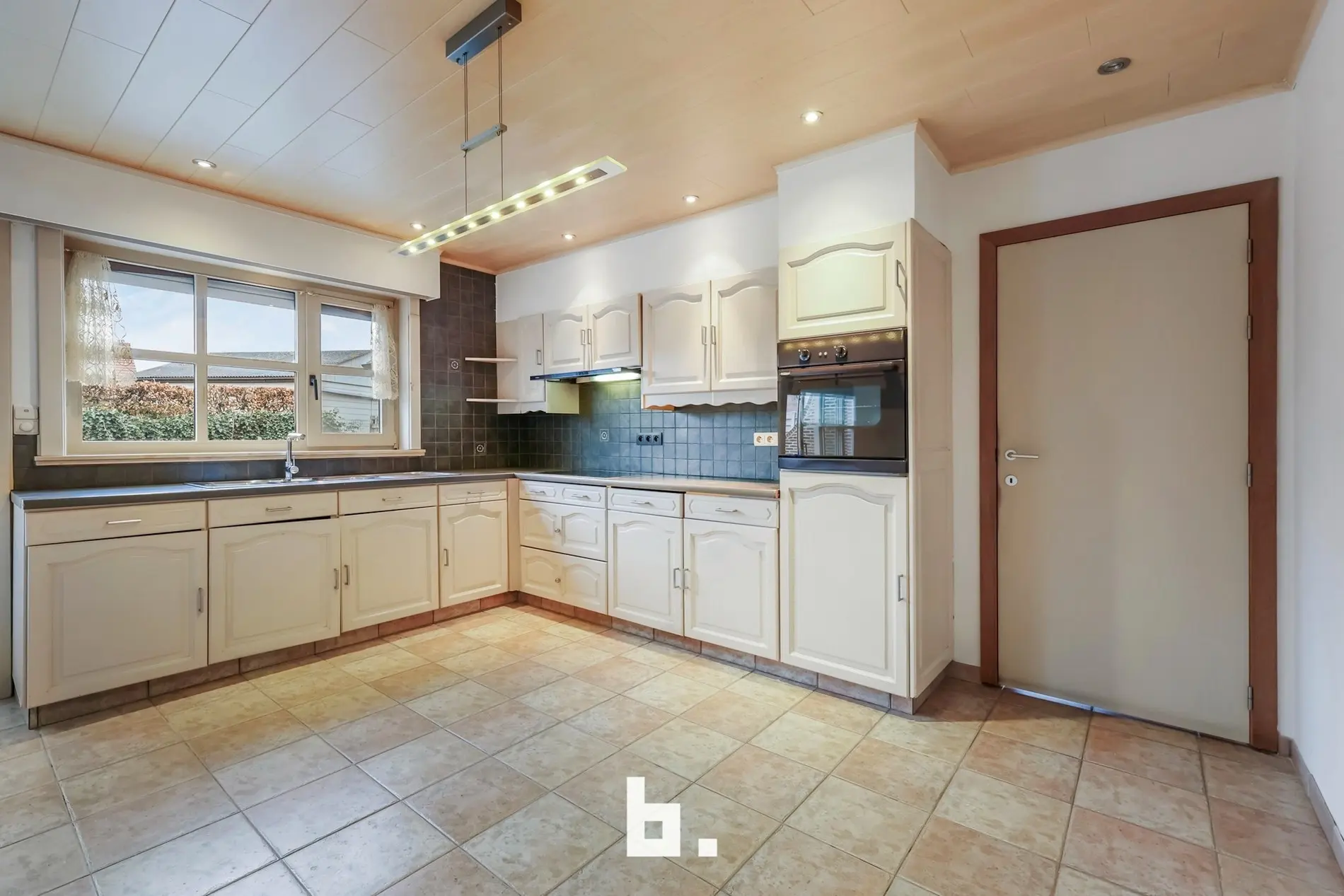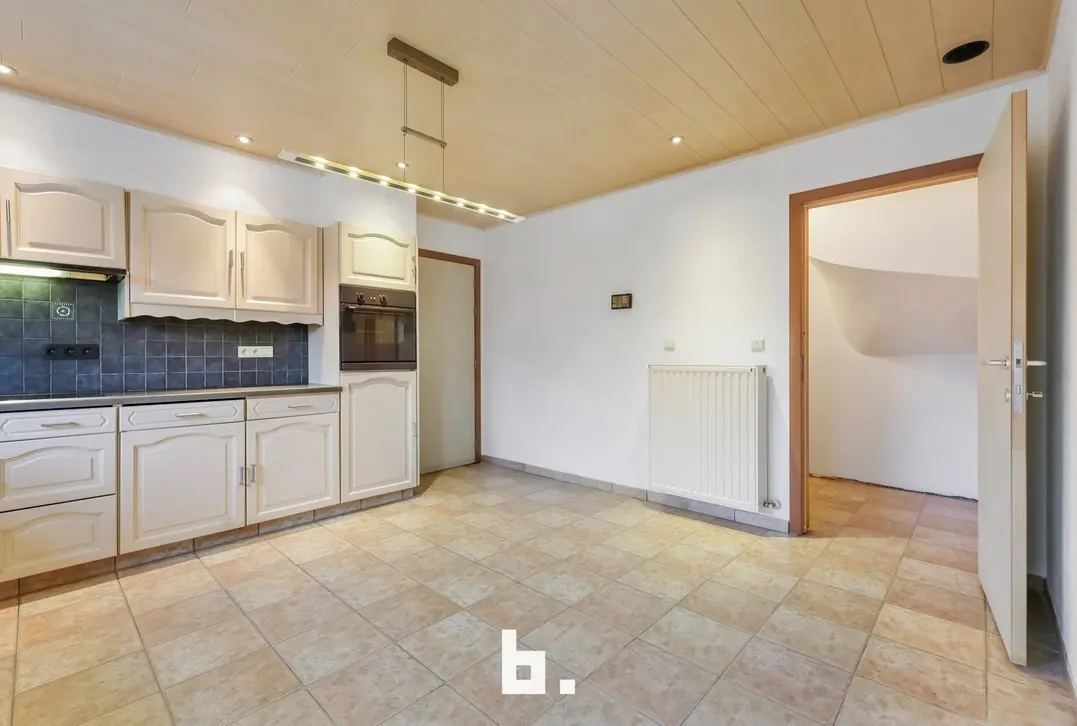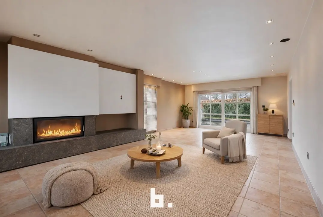 Binnenin word je verwelkomd door een ruime inkomhal met apart toilet. De zeer ruime leefruimte baadt in het licht en biedt een prachtig zicht op de tuin. De houtkachel zorgt voor extra gezelligheid. Ook vanuit de keuken geniet je van een mooi uitzicht op het groen, wat het dagelijkse koken extra aangenaam maakt.