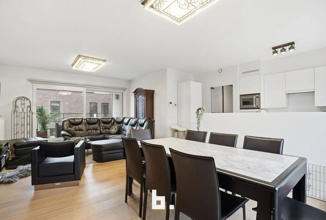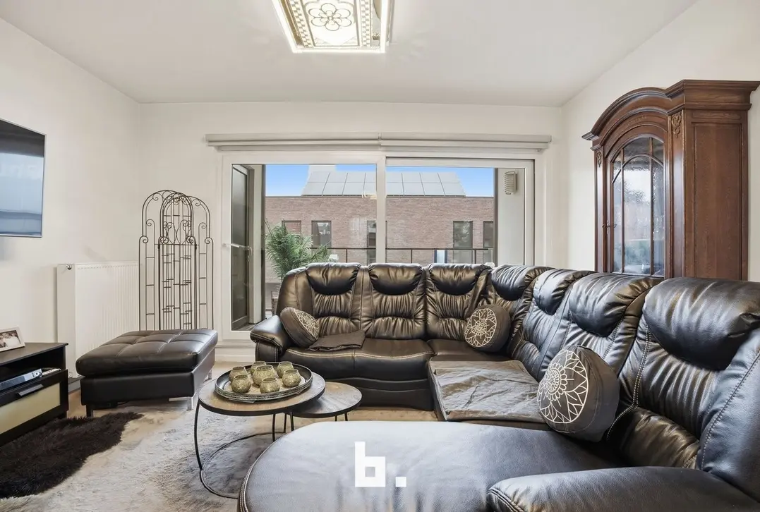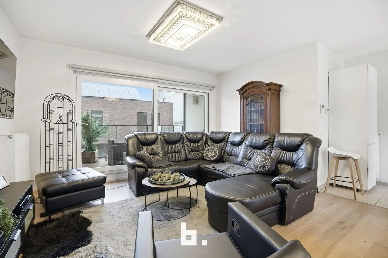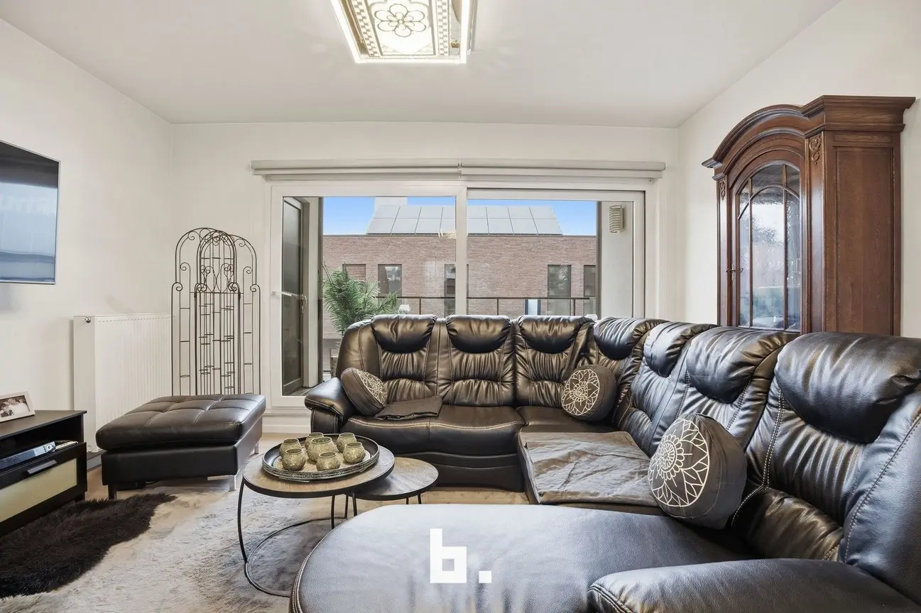 Het appartement heeft een bewoonbare oppervlakte van ca. 110 m² en is doordacht ingedeeld. Via de inkomhal met apart gastentoilet kom je in de lichtrijke leefruimte met grote raampartijen, die naadloos overgaat in de volledig uitgeruste keuken. Deze open leefruimte vormt het kloppend hart van de woning en geeft uit op een zonnig terras, ideaal om te genieten. Verder beschikt het appartement over twee volwaardige slaapkamers, een moderne badkamer met douche, en een praktische berging/wasruimte. Het gebouw is voorzien van een lift en verkeert in een uitstekende staat van onderhoud.