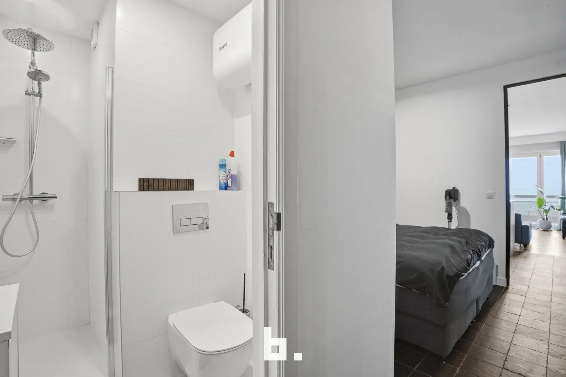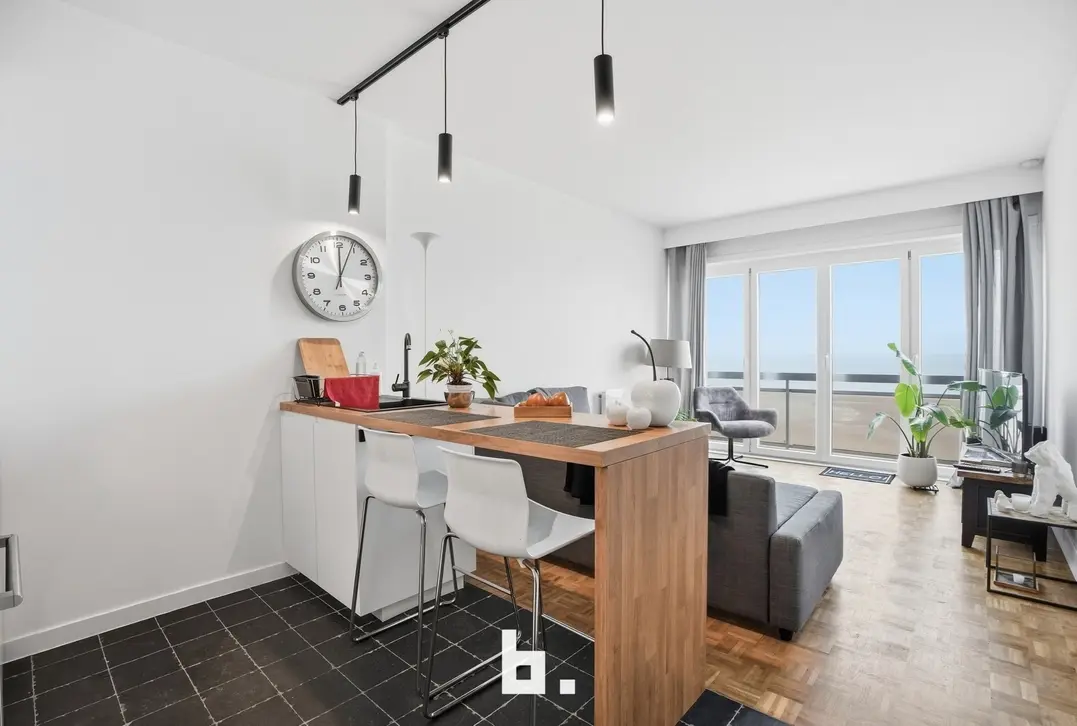Ontdek deze charmante studio van 41 m² met frontaal zeezicht, ideaal gelegen op de dijk van Middelkerke. Geniet elke dag van het rustgevende uitzicht op zee en het strand, recht vanuit je woonruimte.