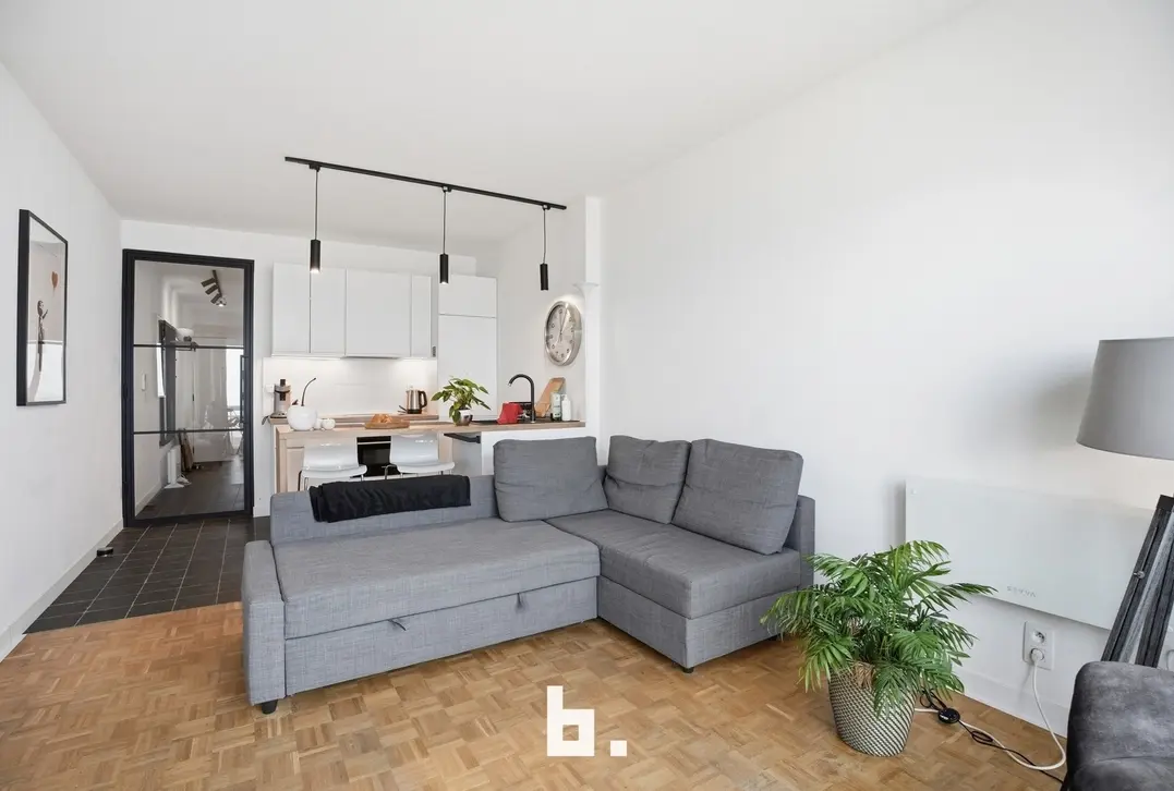 De studio beschikt over een lichtrijke woonkamer, een volledig ingerichte keuken met toestellen, een badkamer en een slaapkamer.