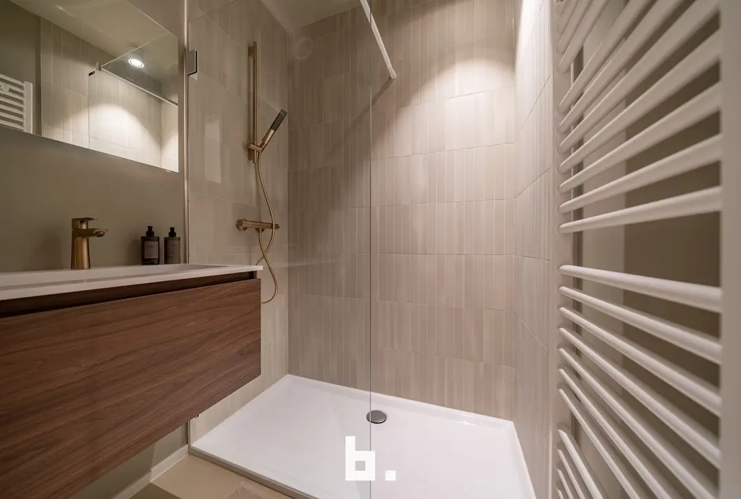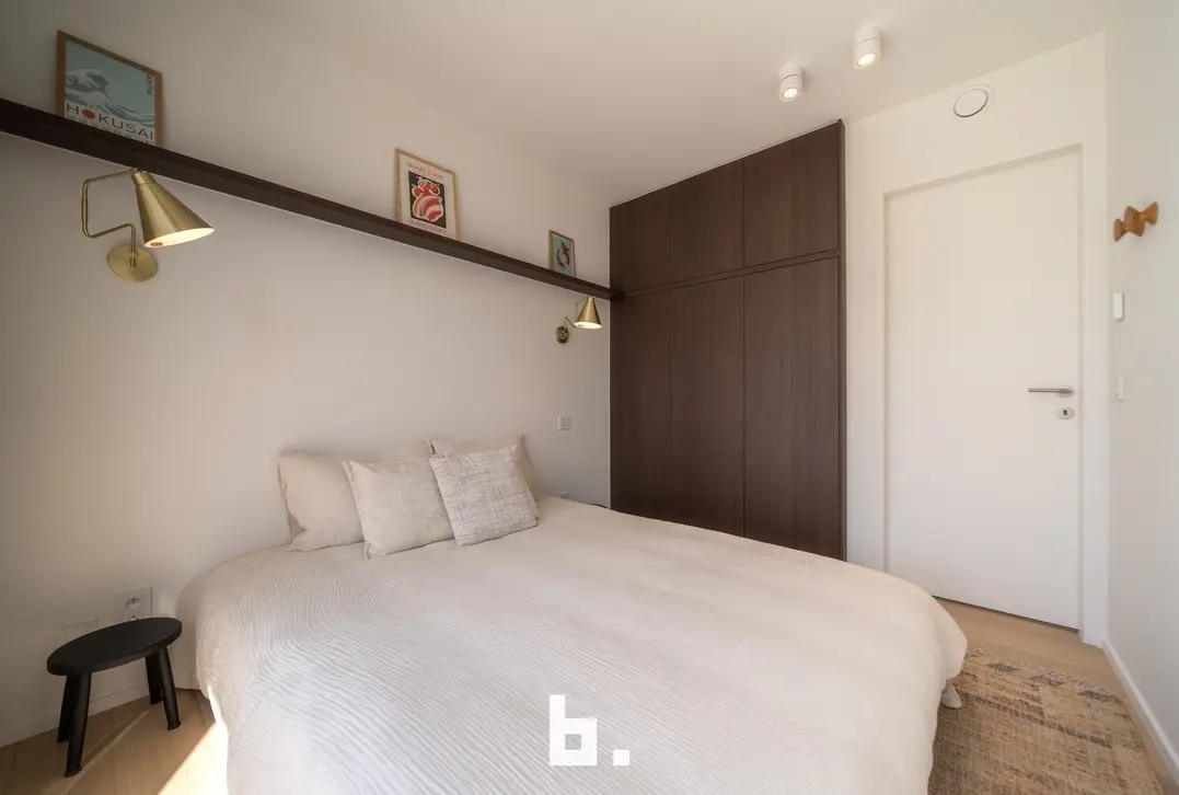 Uniek nieuwbouwappartement op een fantastische ligging in de Paul Parmentierlaan te Knokke. Het hoogwaardig afgewerkt appartement beschikt over een inkomhal met gastentoilet, lichtrijke leefruimte met toegang tot het terras vooraan, luxueuze open keuken voorzien van alle comfort, zit- en eetgedeelte. Vervolgens zijn er 2 volwaardige slaapkamers die beiden toegang hebben tot het zonneterras achteraan, 2 badkamers (inloopdouche, wastafelmeubel, handdoekradiator), praktische berging met aansluiting voor wasmachine en droogkast.