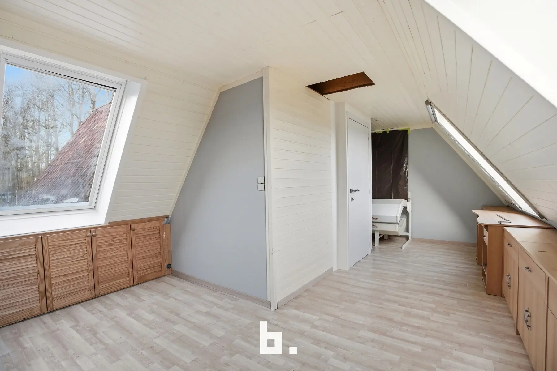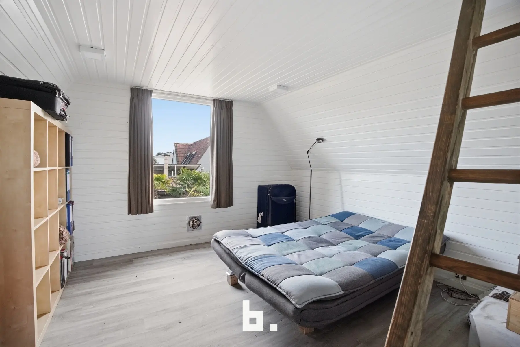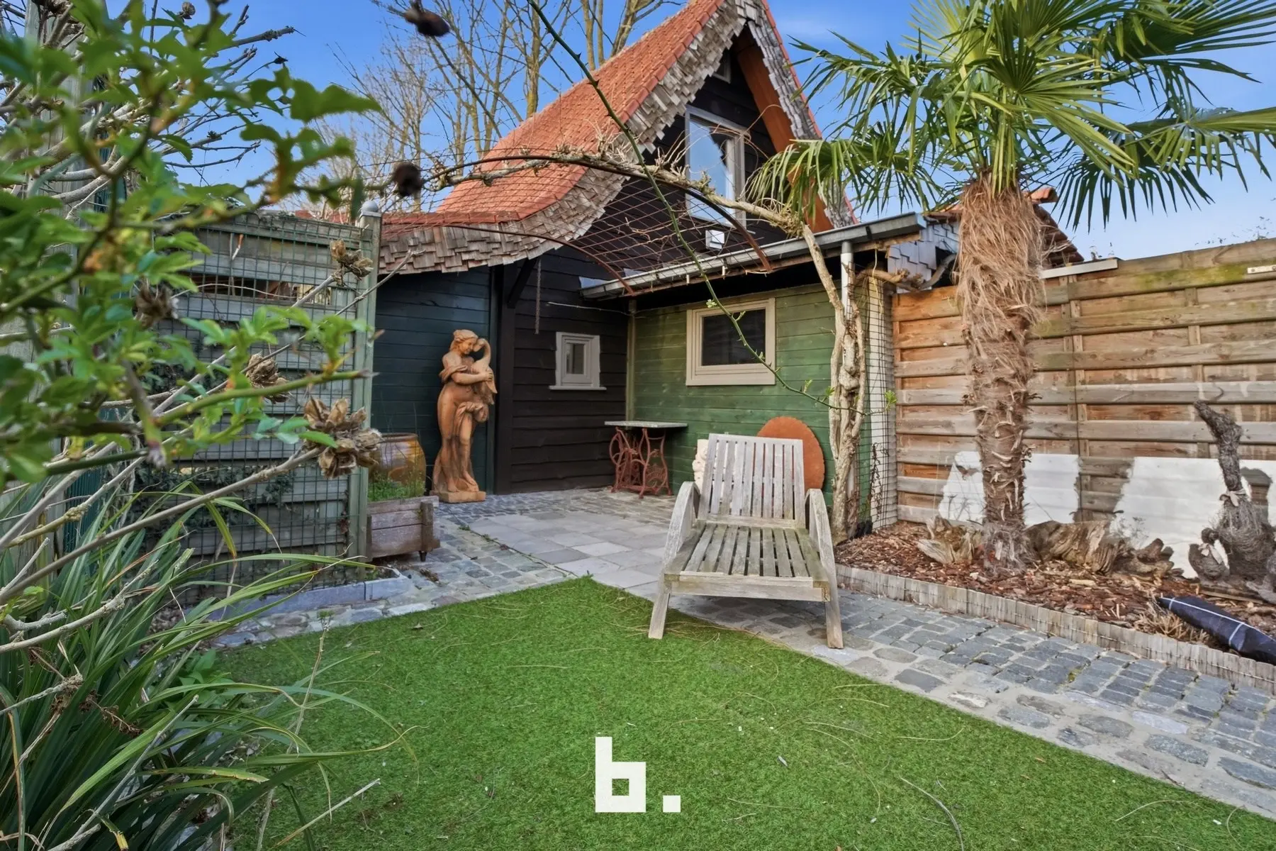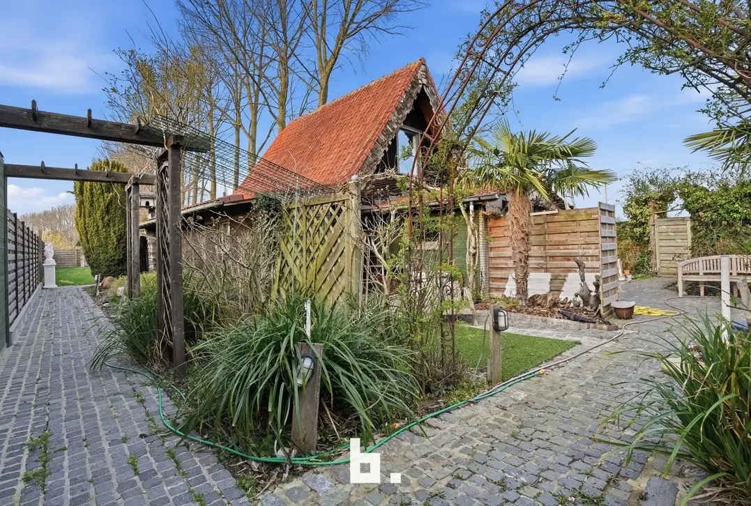 Indeling: De woning kom je binnen via de inkom met gastentoilet, verder heb je de leefruimte met trap naar het eerste verdiep. Aansluitend de keuken met eetplaats en zicht op de tuin. Naast de keuken heb je de inpandige garage met alle technieken en automatische poort. Douchekamer. Op het eerste verdiep zijn de twee slaapkamers. Als extra heb je in de zeer ruime tuin een bijhuis wat als hobbyruimte kan dienen of als extra berging. Voorzien van slaapkamer en keuken.