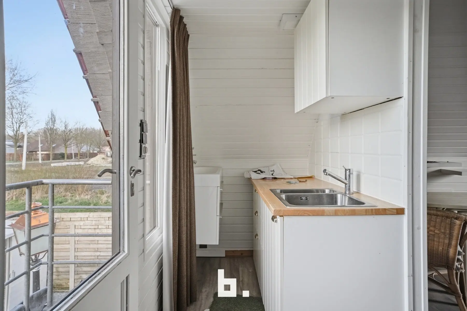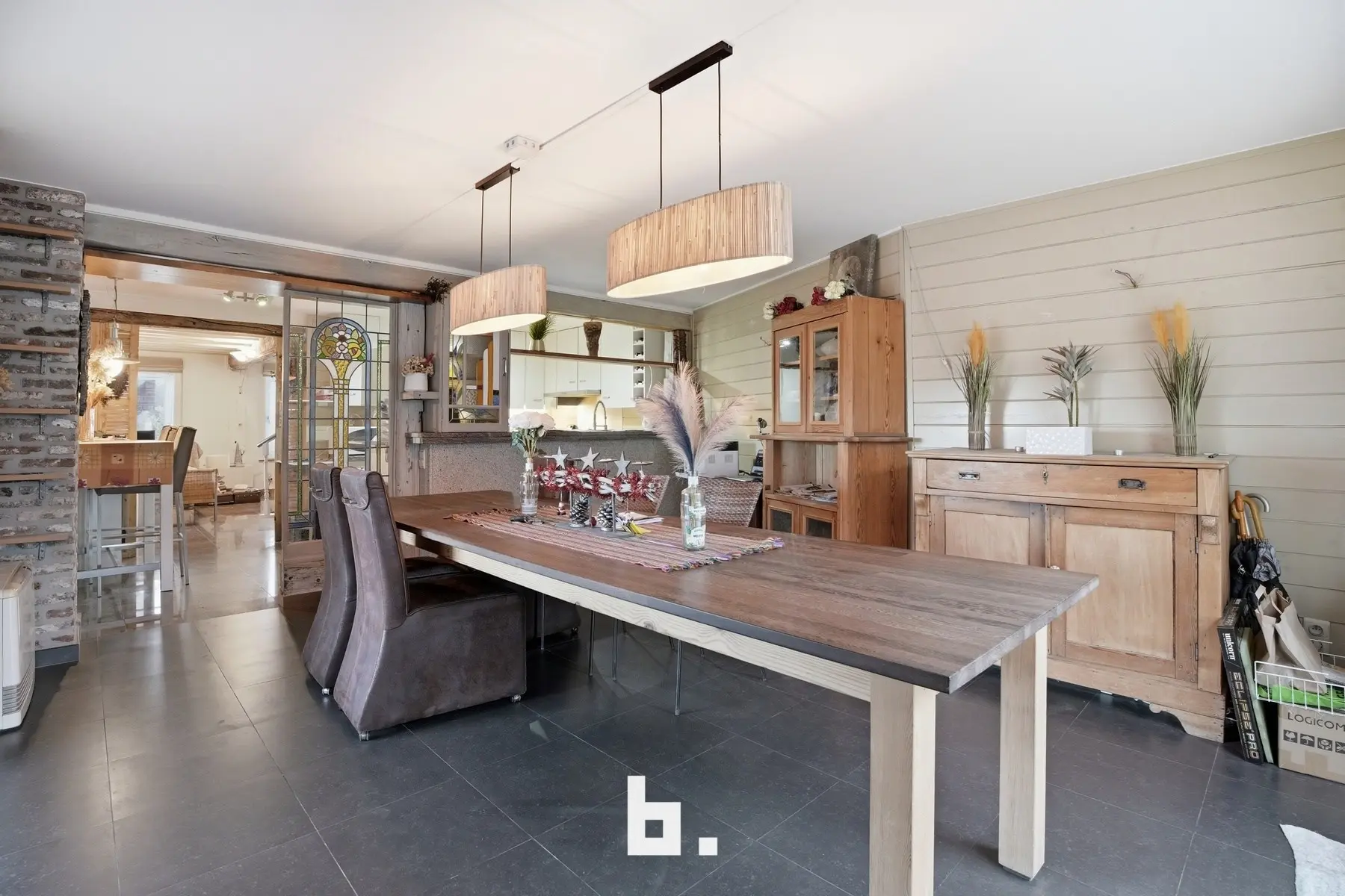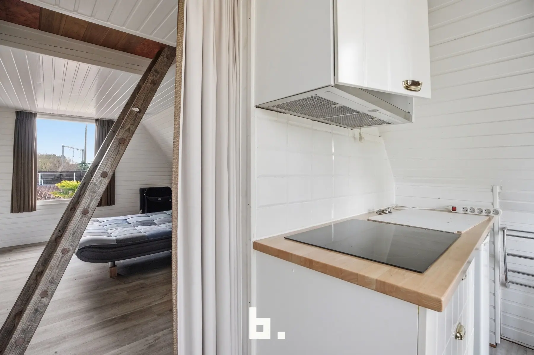 Indeling: De woning kom je binnen via de inkom met gastentoilet, verder heb je de leefruimte met trap naar het eerste verdiep. Aansluitend de keuken met eetplaats en zicht op de tuin. Naast de keuken heb je de inpandige garage met alle technieken en automatische poort. Douchekamer. Op het eerste verdiep zijn de twee slaapkamers. Als extra heb je in de zeer ruime tuin een bijhuis wat als hobbyruimte kan dienen of als extra berging. Voorzien van slaapkamer en keuken.