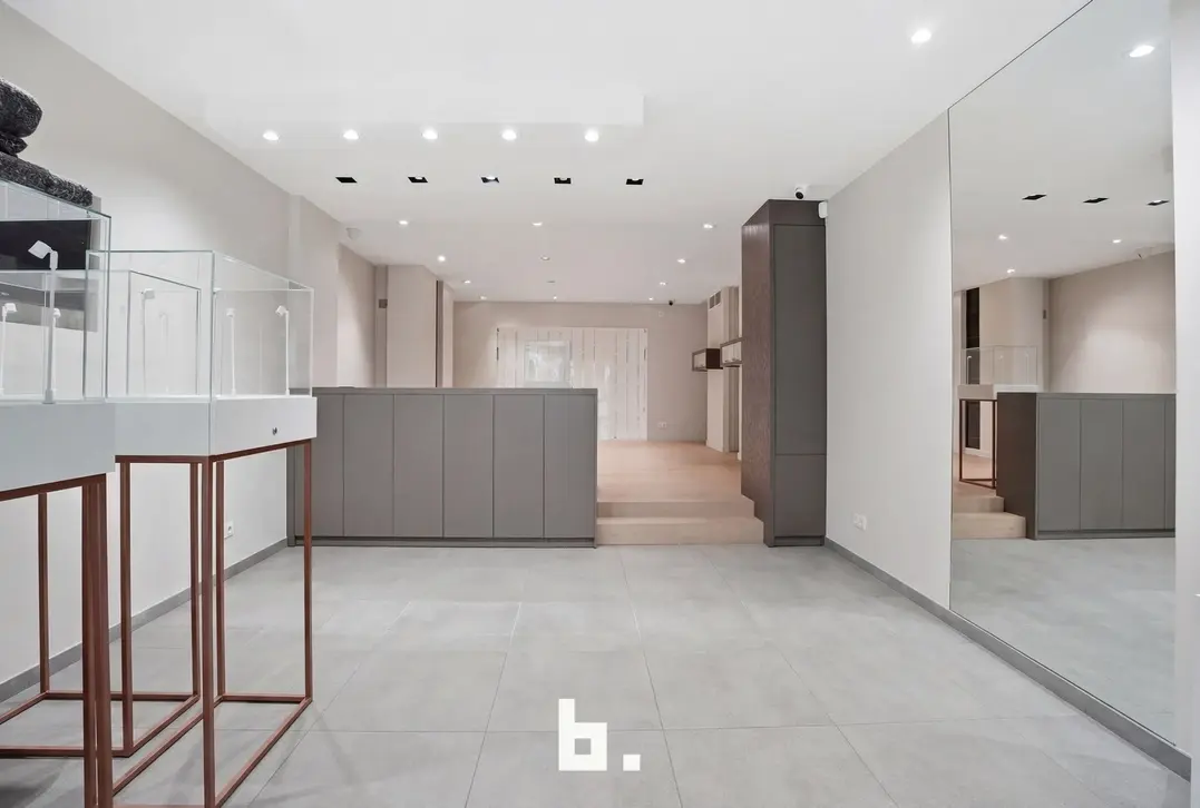 De handelsruimte op het gelijkvloers is momenteel ingericht als juwelierszaak en beschikt over een grote etalage die zorgt voor uitstekende visibiliteit. Dankzij de centrale ligging en het levendige marktplein is dit pand perfect geschikt voor detailhandel, een vrij beroep of een andere commerciële activiteit.