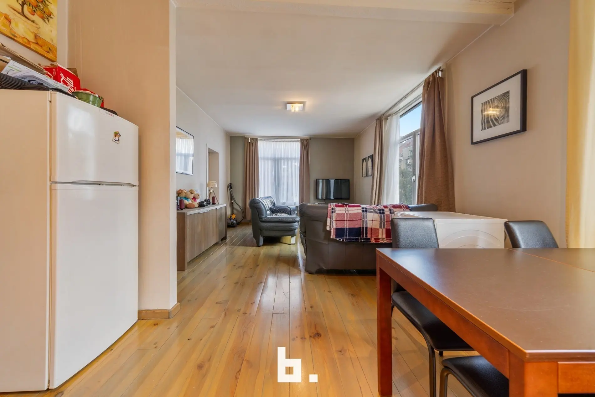 Binnen bevinden zich 3 lichtrijke appartementen die elk een ruime leefruimte hebben en 1 aparte slaapkamer, een ruime berging en badkamer met toilet.
