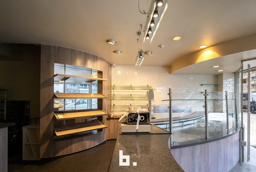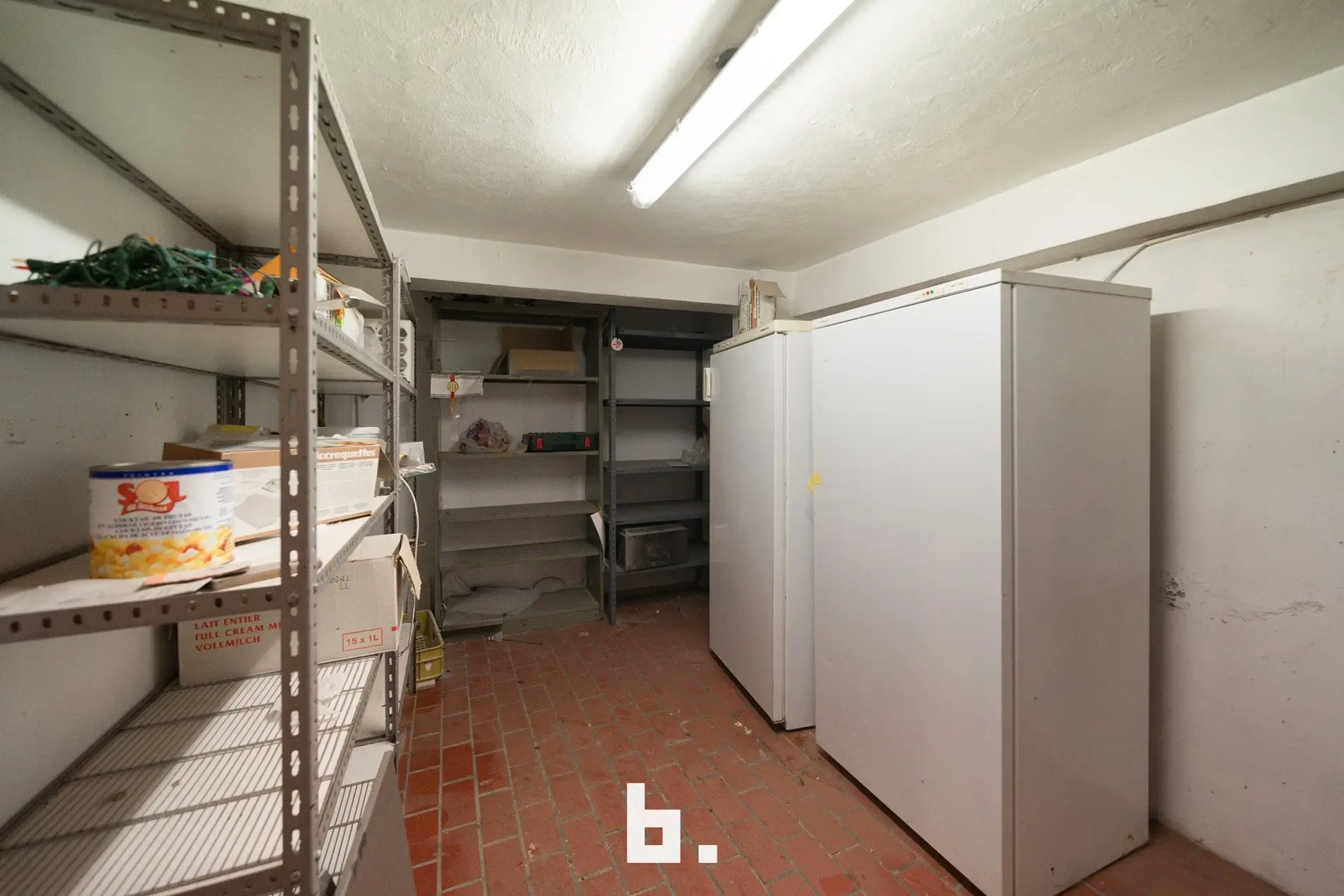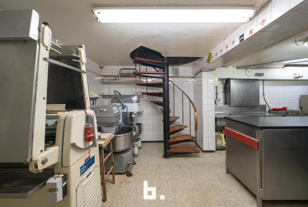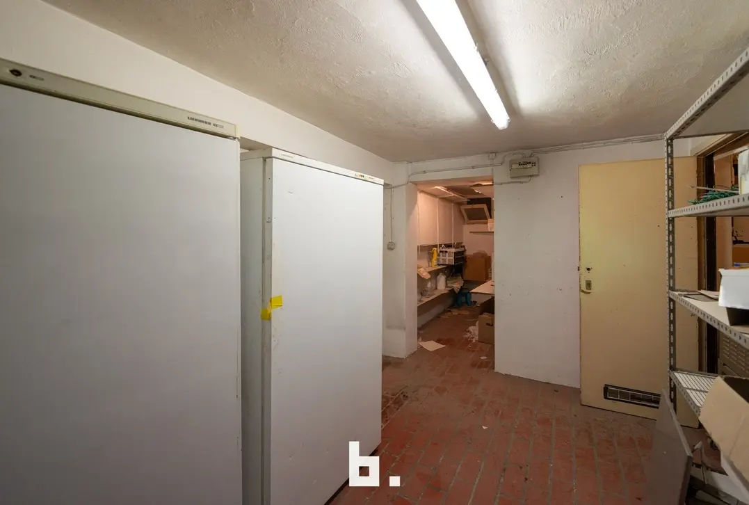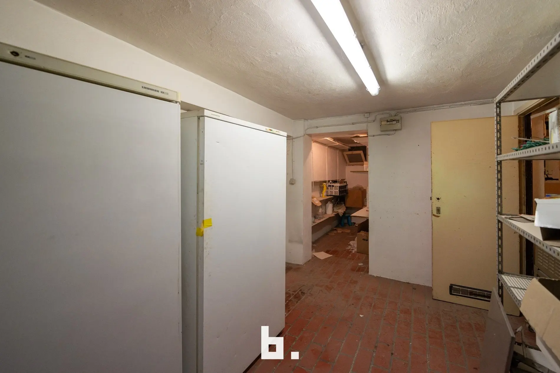 Het pand is geschikt voor verschillende doeleinden en bepaalde horeca uitbating en bestaat op het gelijkvloers uit de eigenlijke winkelruimte met achterliggende keuken en toilet. Op de ondergrondse verdieping is er een grote werkruimte. Extra ruime kelderberging in de ondergrondse gemeenschappelijke delen.