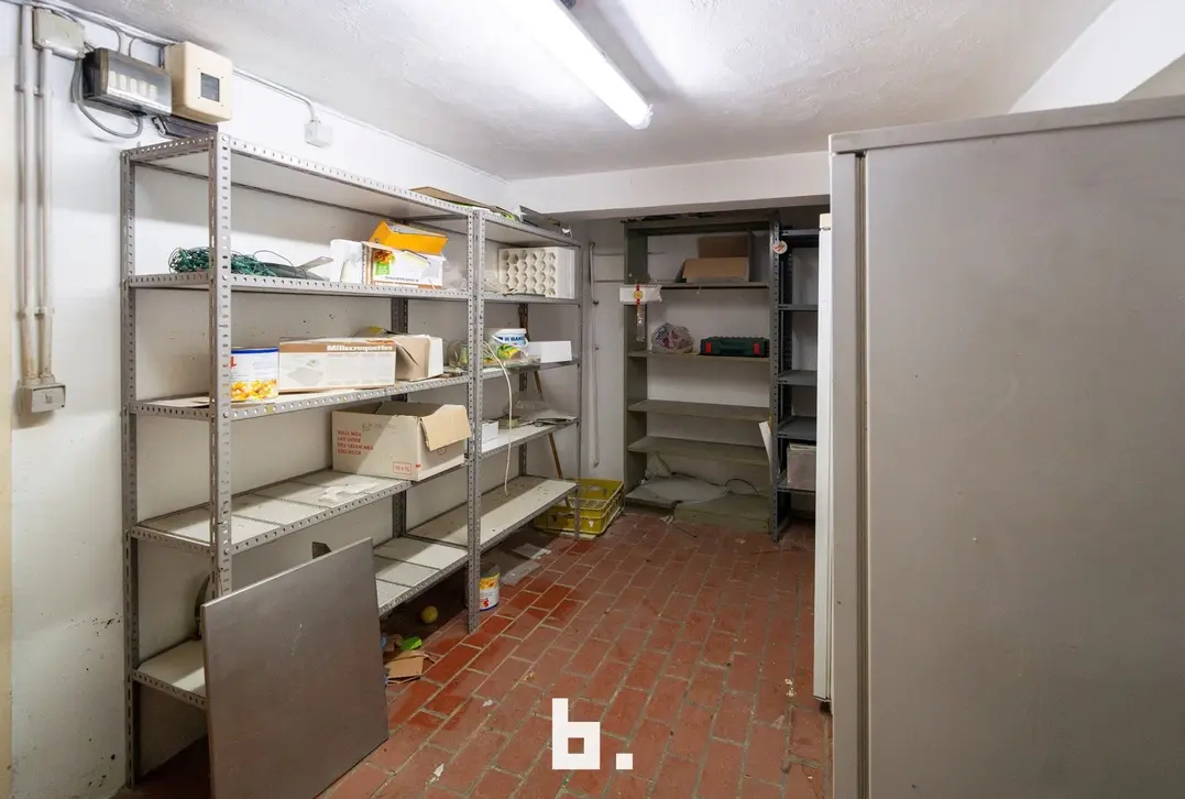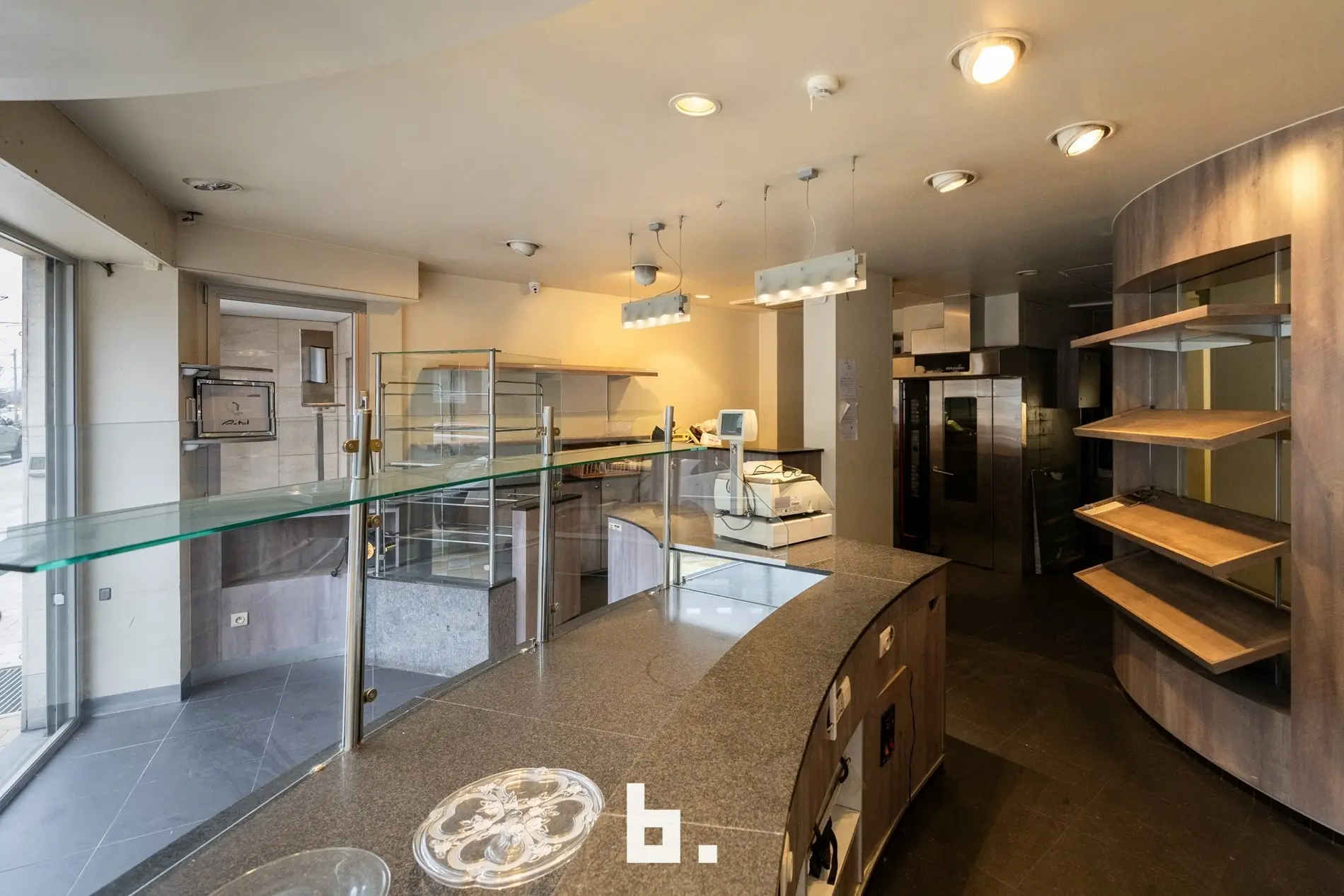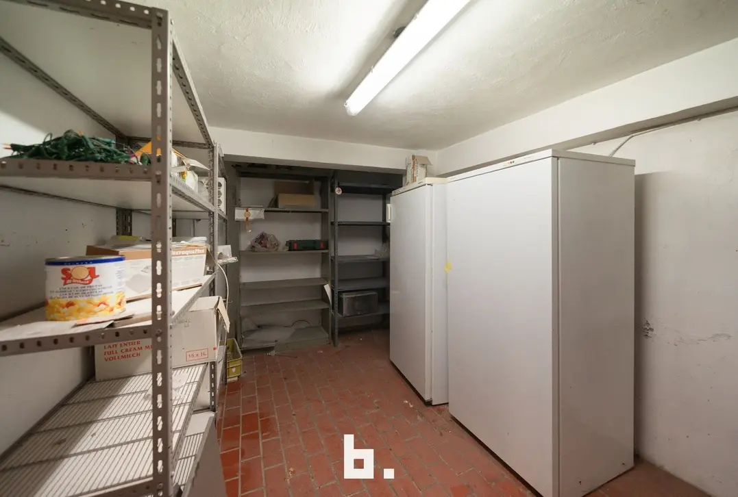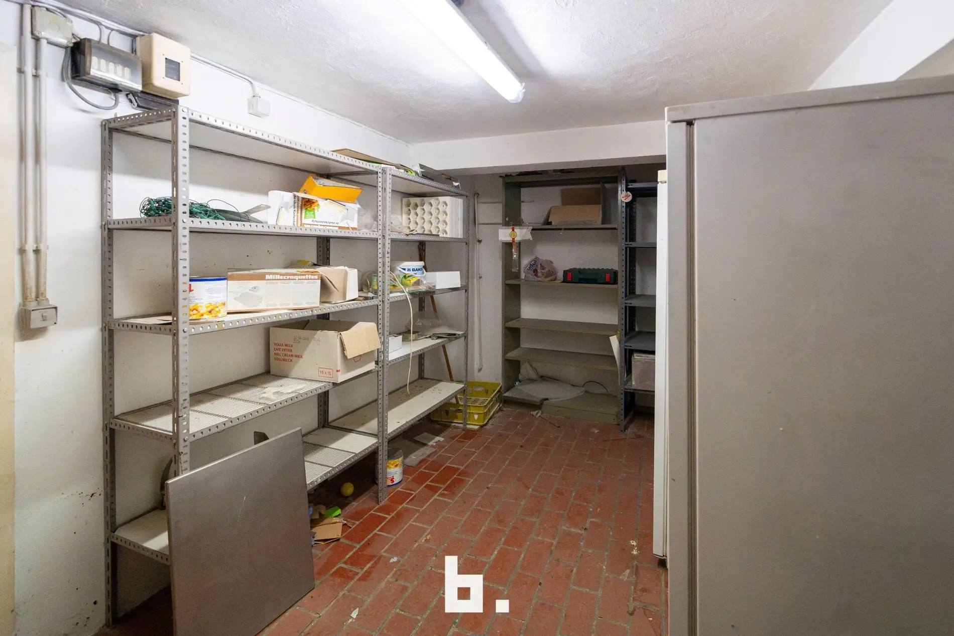 Het pand is geschikt voor verschillende doeleinden en bepaalde horeca uitbating en bestaat op het gelijkvloers uit de eigenlijke winkelruimte met achterliggende keuken en toilet. Op de ondergrondse verdieping is er een grote werkruimte. Extra ruime kelderberging in de ondergrondse gemeenschappelijke delen.