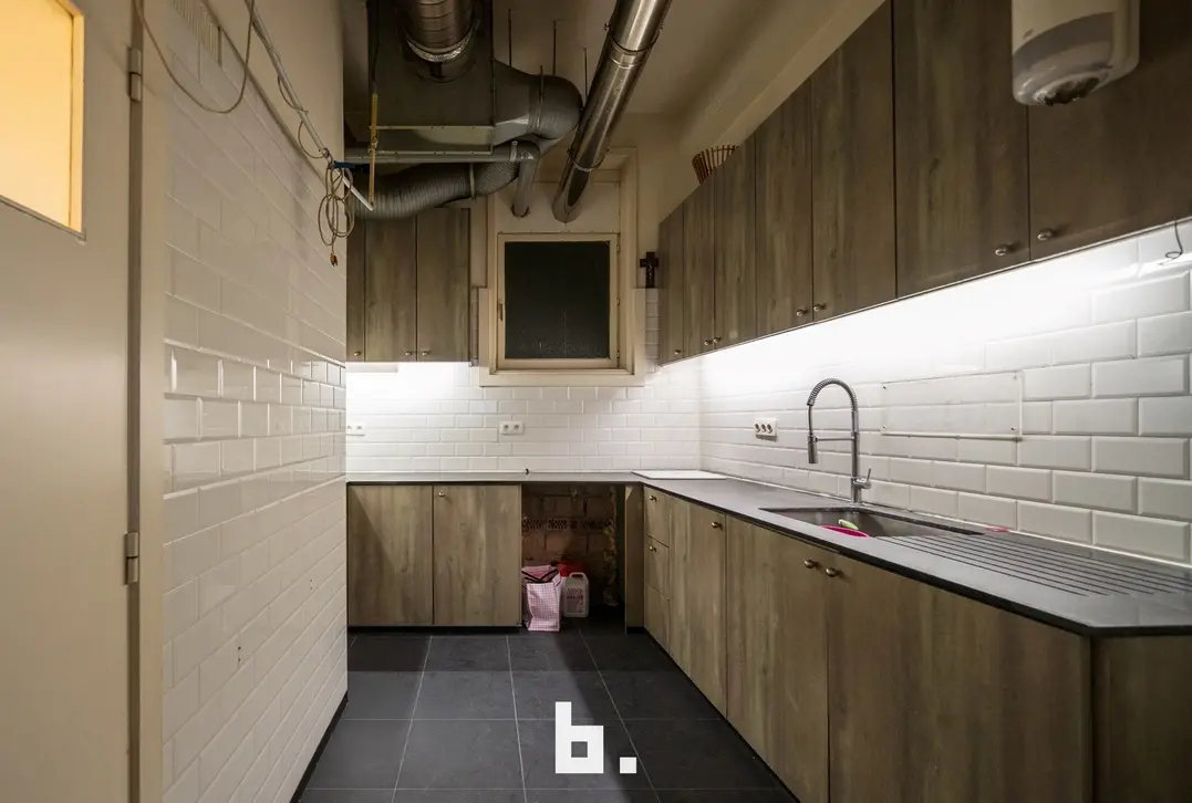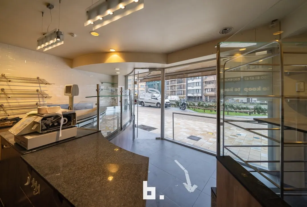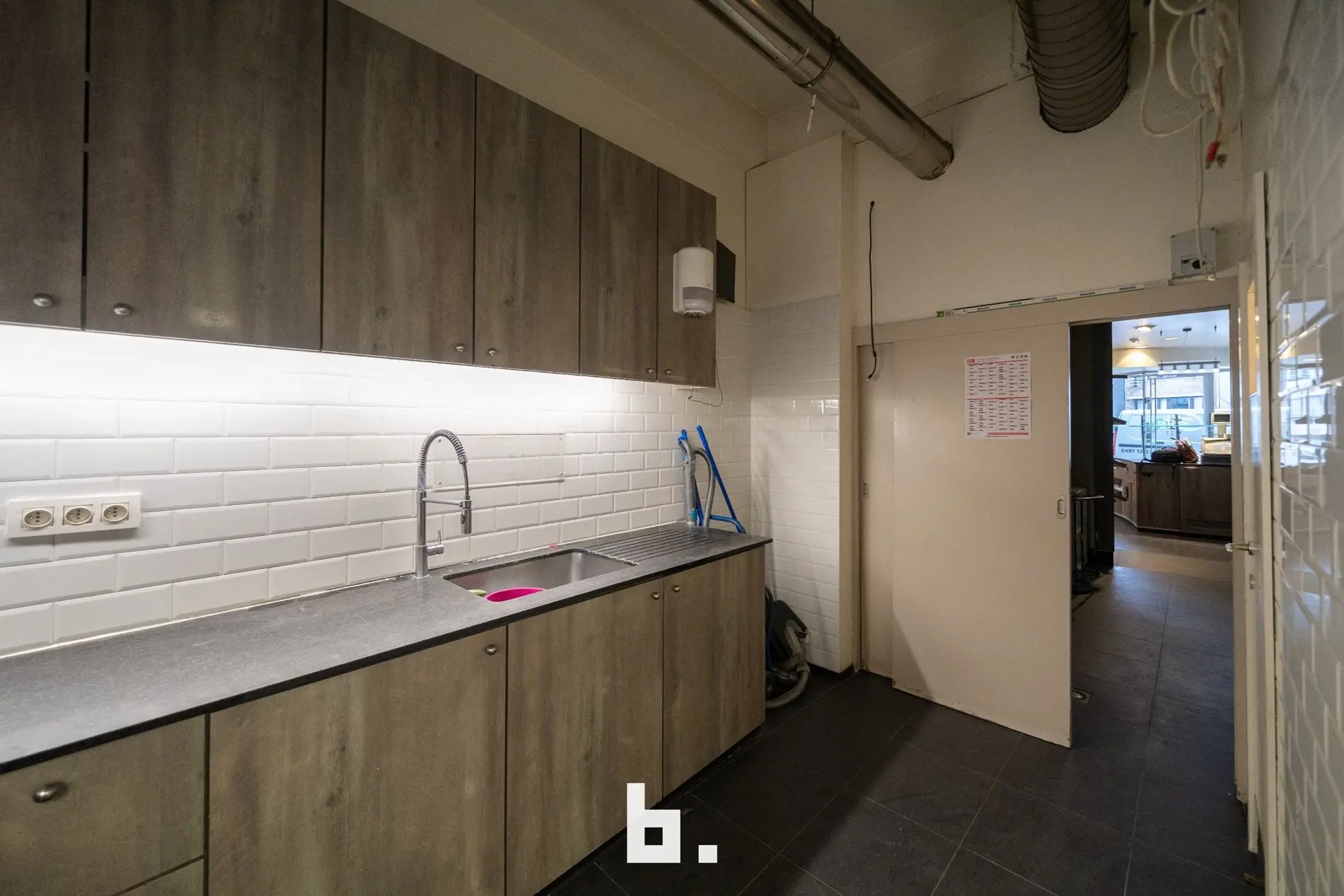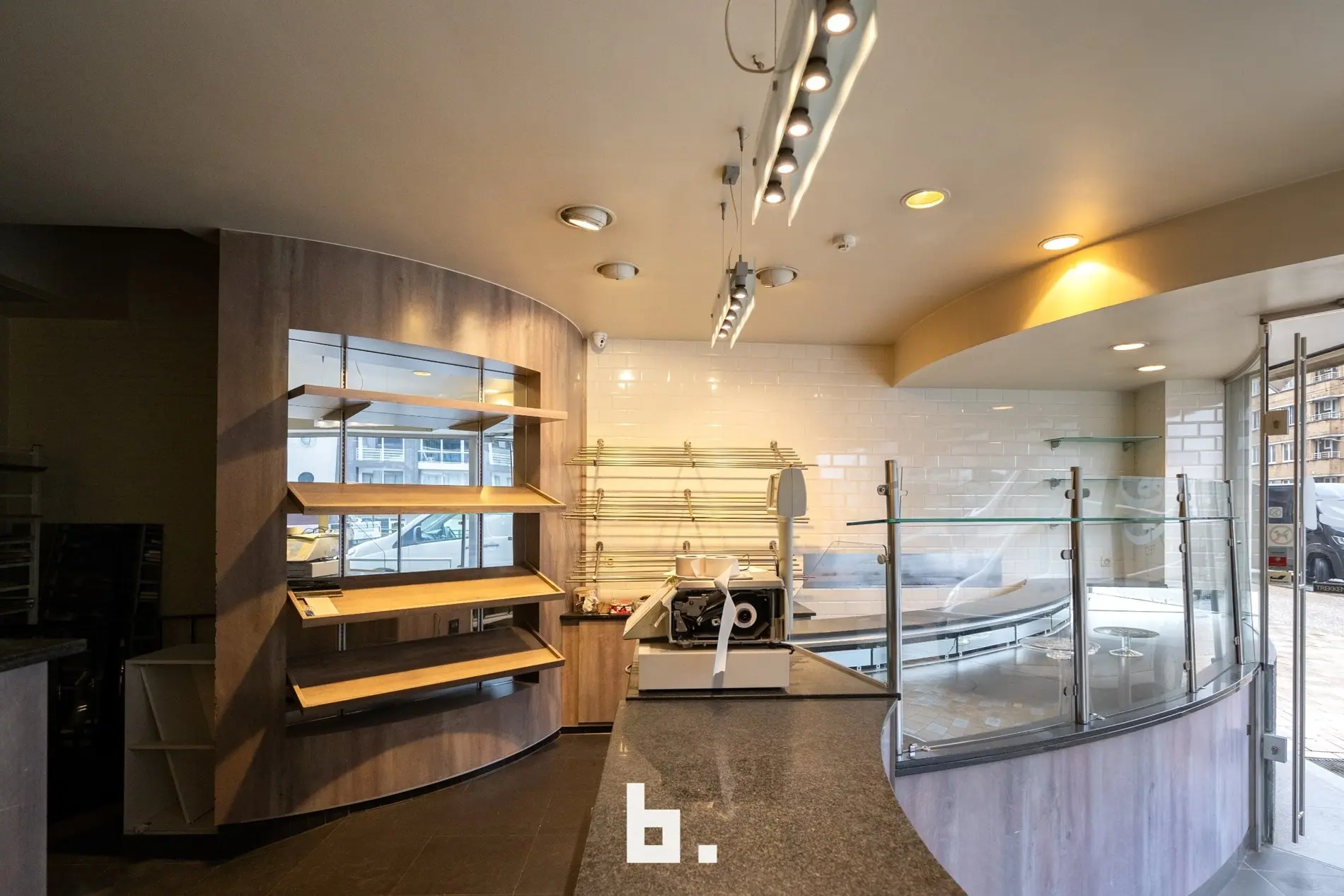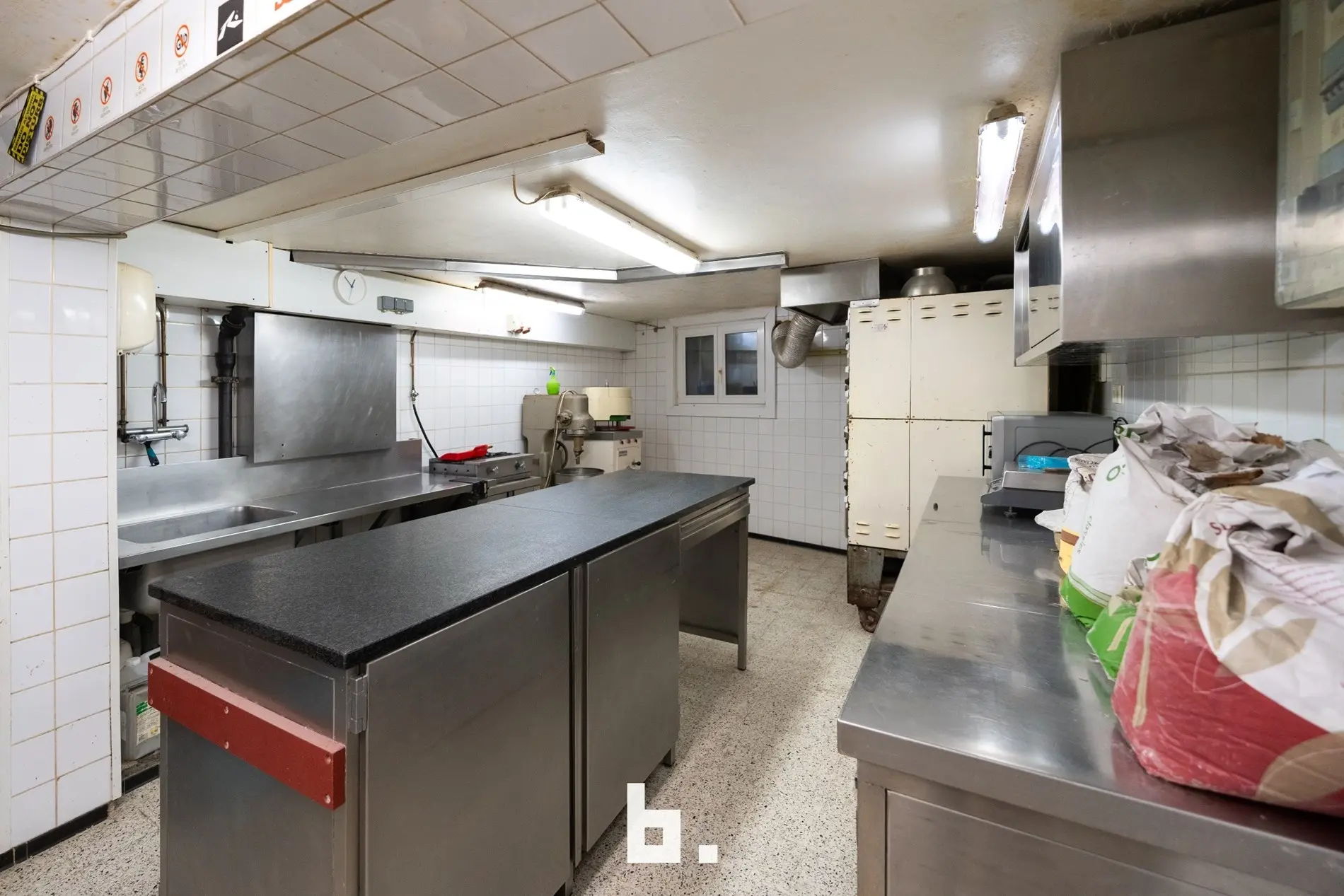 Het pand is geschikt voor verschillende doeleinden en bepaalde horeca uitbating en bestaat op het gelijkvloers uit de eigenlijke winkelruimte met achterliggende keuken en toilet. Op de ondergrondse verdieping is er een grote werkruimte. Extra ruime kelderberging in de ondergrondse gemeenschappelijke delen.