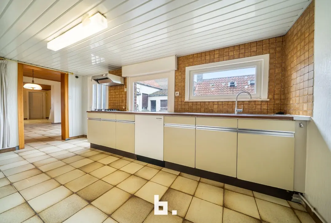 In het centrum van Zuienkerke, pal naast de kerk, vinden we deze voormalige dorpswinkel met een unieke troef: een prachtig, weids uitzicht op de achterliggende velden. De woning vraagt om een grondige opfrisbeurt. De indeling is als volgt: Gelijkvloers: woonkamer, keuken, berging/kelder. Eerste verdieping: drie slaapkamers. Zolderverdieping: ruime zolder met uitbreidingspotentieel. Buitenruimte: langgerekte tuin met open zicht op de velden. De tuin is momenteel voorzien van koterijen en dient nog verder opgesplitst te worden.