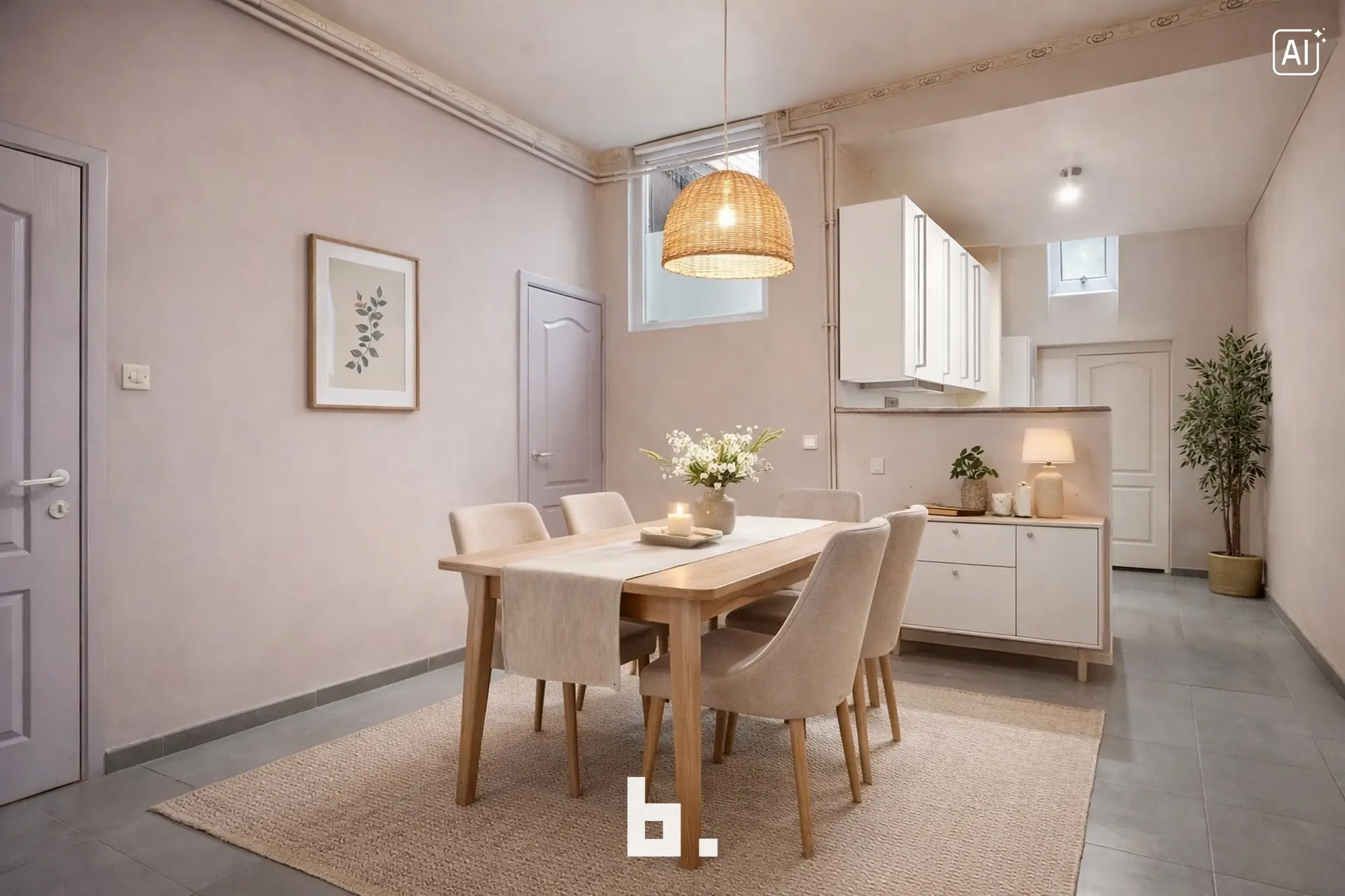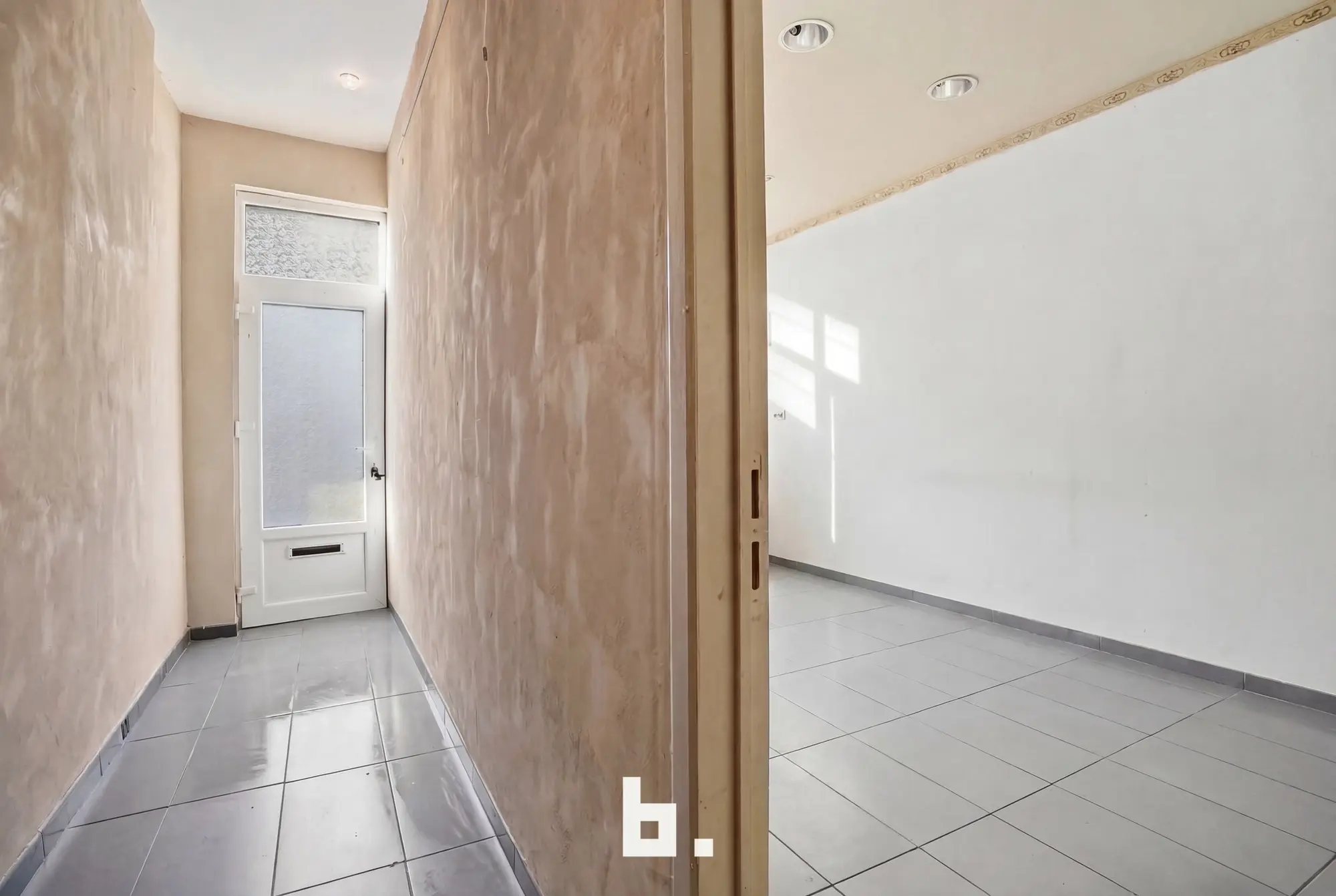 De woning beschikt over een praktische indeling. Op het gelijkvloers vindt u een aparte inkom naar een mogelijke handelsruimte, een inkomhal voor de woonst, een eetplaats, keuken en badkamer.